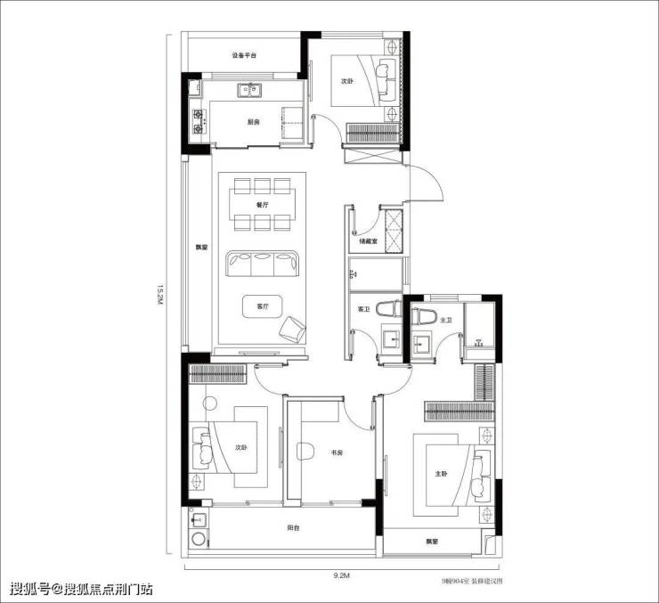 四、户型杀手锏:100㎡四开间朝南,但得房率有猫腻