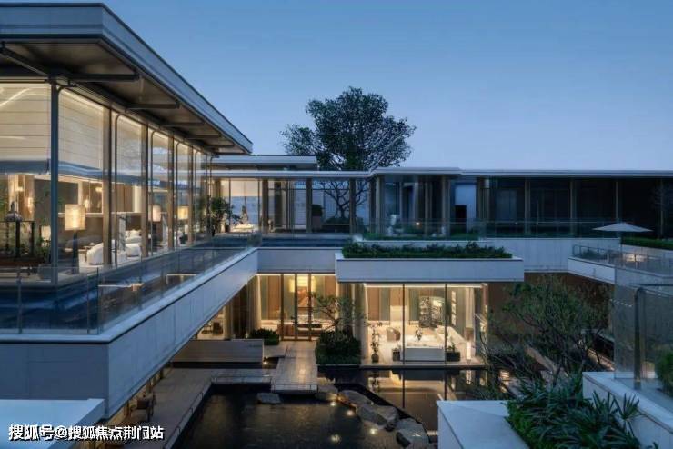 整体向内围合的布局,是对外界喧嚣的温柔疏离,亦是对内部价值的极致凝练。下沉庭院与错层露台构成的多维空间叙事,以「镜面水景」收束自然灵韵,演绎「隐于市」的禅意哲学。