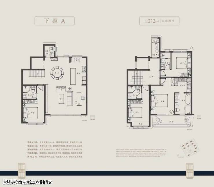 户型方面,主力建面约210-280㎡四层叠墅,采用全套房设计,朝南大开间阳光满堂,主卧“小家化”,步入式衣帽间和独立卫浴间兼备,更大尺度的面积,更开阔的家庭社交区,更舒适的套房空间。