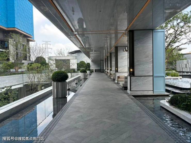 湖映金沙的外立面古典一些,它没有芝澜/玉澜那般华丽的玻璃幕墙,我觉得它们自己写的“金澜画境”还是准确的,就是金色的窗框层面分明,这是风格上的迥异,审美也不应千篇一律,重要的还是铝板+石材的运用,这在限价时期的金沙湖倒是不常见。