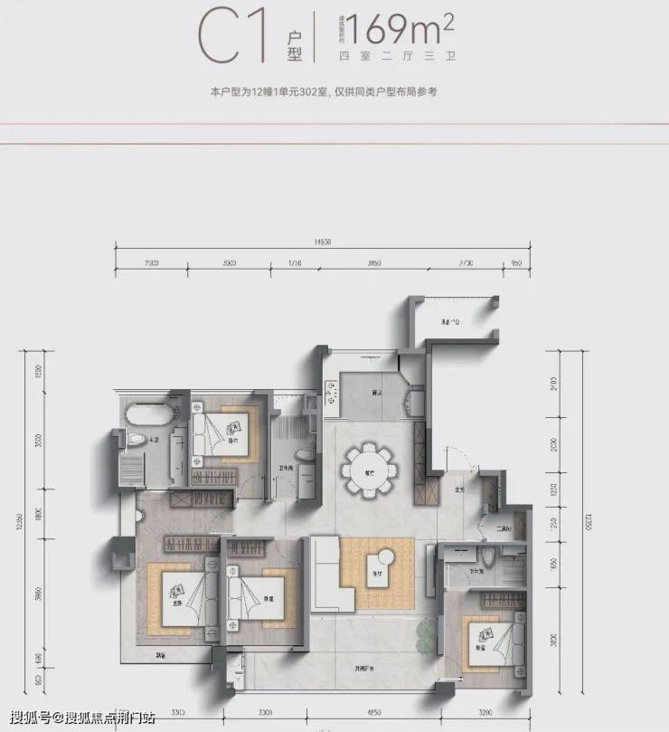 尤其要注意的是,首开12号楼的169方东西边套户型格局大致相同,但入户门厅,玄关进深等细节上是有区别的,以及建筑面积差了3个平方,西边套更大一点。