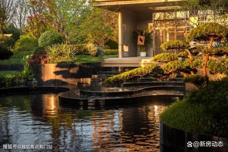 滨纷城又把小区主入口做得如酒店一般奢华,张扬的门头、石材景墙、水景庭院等元素都装进了入口的一方天地。