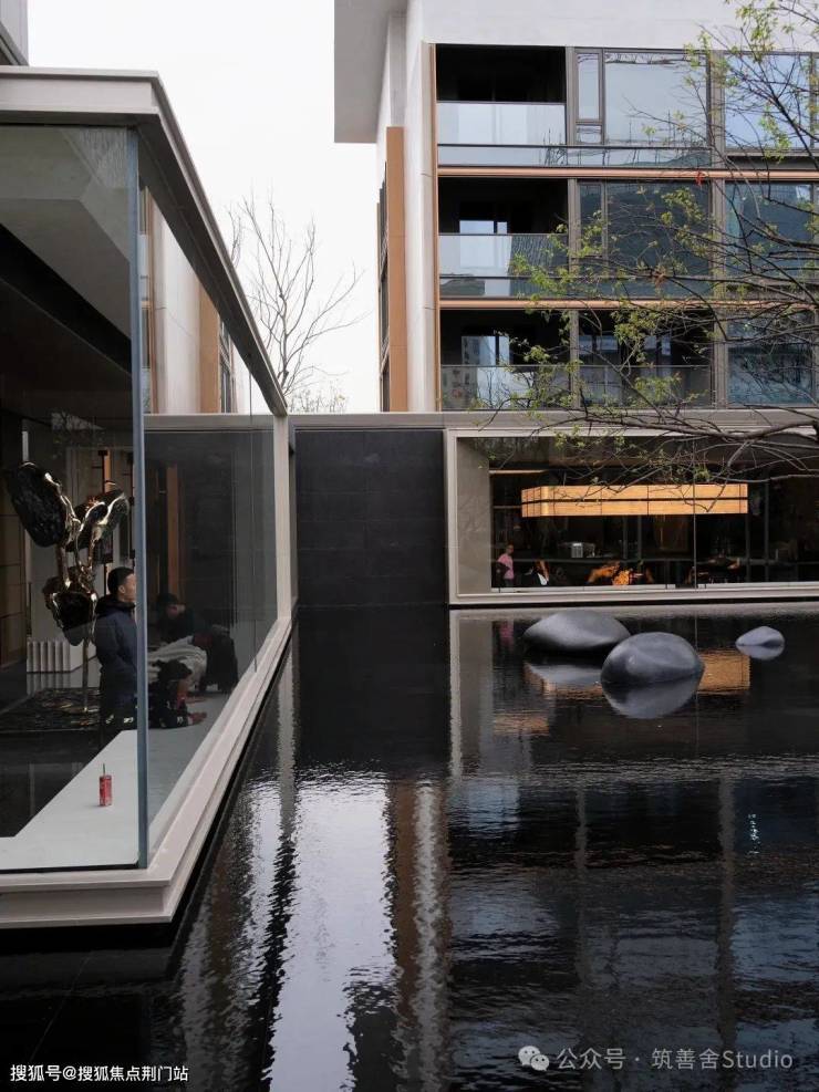 前面序厅中水上树阵的核心理念在于对称与“悬浮之美”,而步入园区中心,这座水院的焦点则是“环抱之韵”,这一设计创新,开创了前所未有的空间体验。
