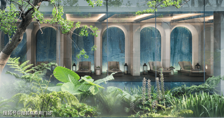 恒温泳池、健身房、影音室等生活场域,早已超越功能本身。恒温泳池旁,背景墙由于昭大师创造,深邃的艺术氛围,带来度假般的松弛体验。健身房的落地窗外即是园林景致,运动时亦能与自然艺术相拥。此刻,会所已不再是单纯的社交空间,而是艺术生活的沉浸式剧场。