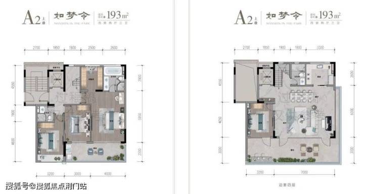 拿上叠来说,餐客厅面宽约7米,进深约6米,足足约42㎡的大方厅,已经是堪比商业大平层的尺度,外面还衔接着进深约3米,面积约30㎡的超大露台。