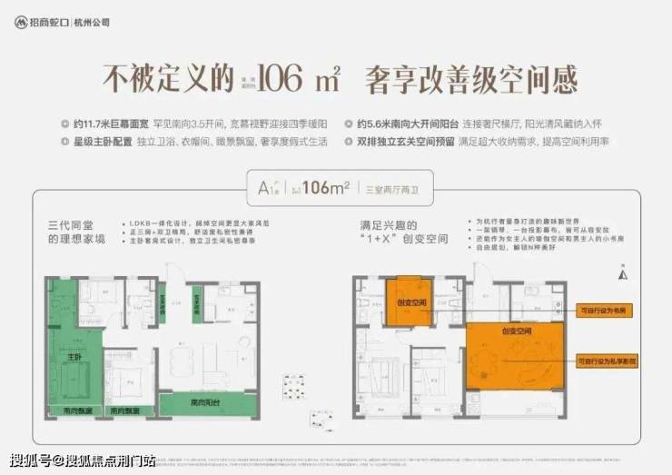为了让更多生活在杭州、热爱杭州的年轻人和刚需都能在杭州安家,开发商把它的起步户型设计成了建面约106㎡。
