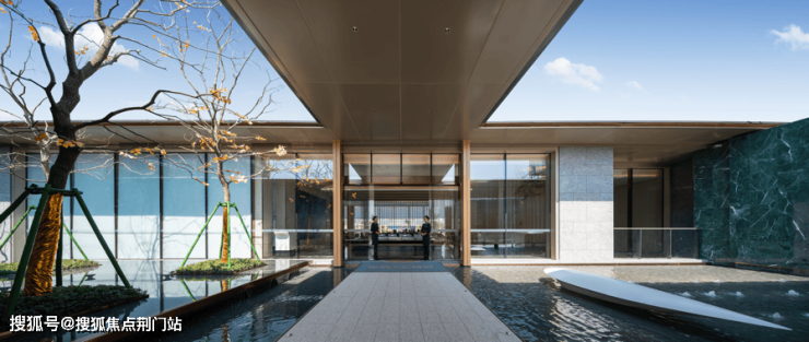 超30米宽挑檐入口,实现无风雨落客。沿着连廊迈入大堂,垂直电梯可直通地下室,若是风雨天气,免受雨水侵袭,实现无风雨归家。
