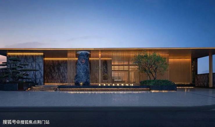 项目主入口,打造了一个超30米宽的挑檐酒店式入户大堂,可供业主无风雨落客。
