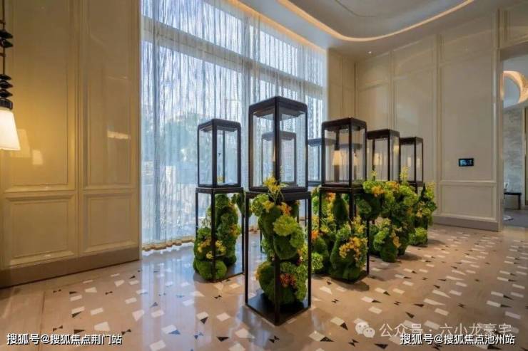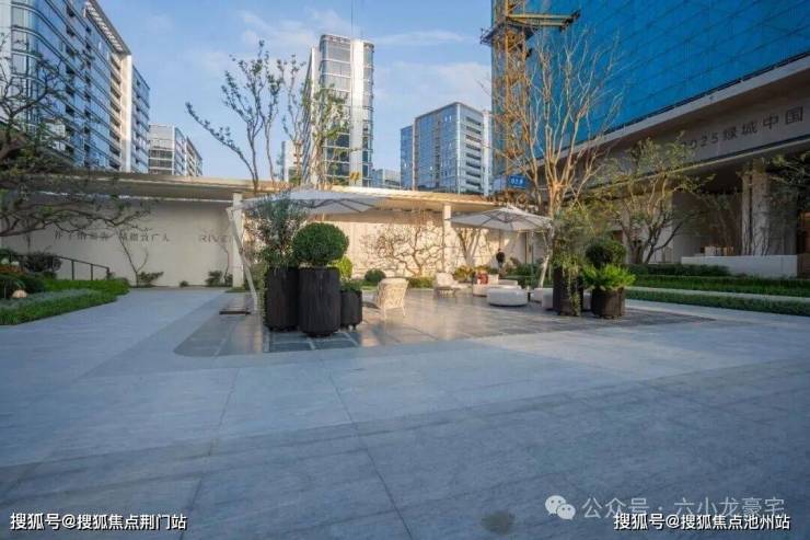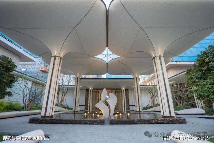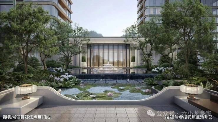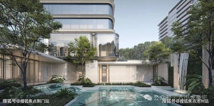 ②丰富的公区配置:下沉庭院、室内恒温泳池与嬉水池(两者通过可开合玻璃立面产生互动)、中轴水景花园会所、空中观景健身盒子。