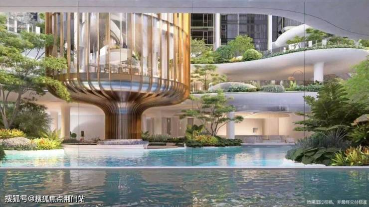 元序也有一个形似“飞碟”的圆形玻璃会所,超5000㎡的面积,恒温泳池、私宴厅、观景会客厅一应俱全。结合约6.3米挑高的架空层,形成一个庞然的主题泛会所体系。