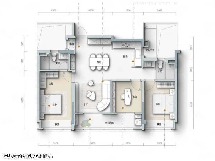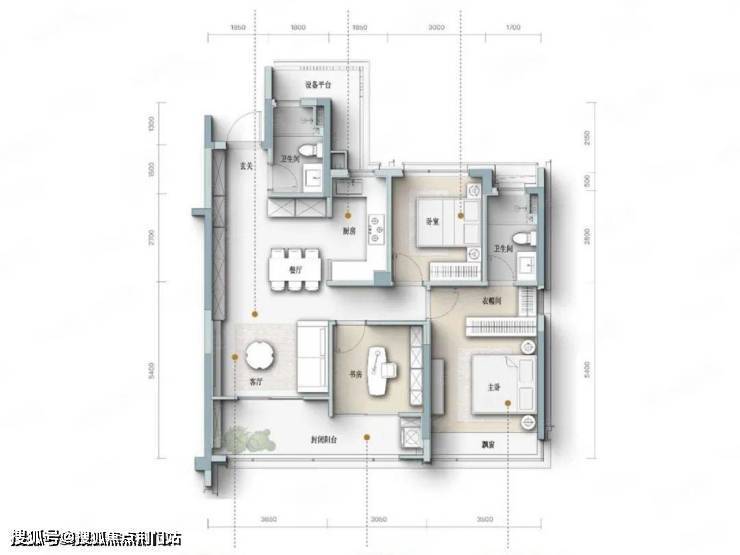 四开间朝南设计,主卧套房设计,宽景封闭式阳台。