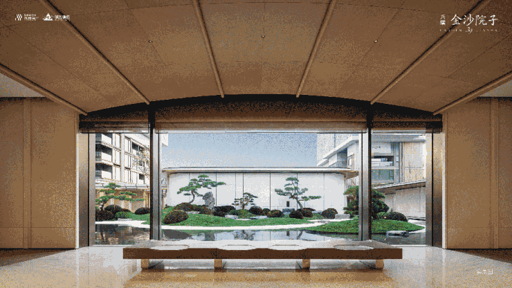 来到金沙院子,第一步就是登高,拾级而上,进入序厅,便是那一面巨幅玻璃取景窗,框出了如“足立美术馆”的精美画卷。
