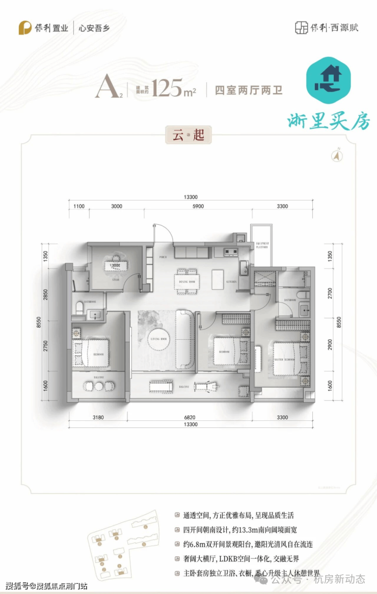 四开间朝南设计,约13.3m南向阔境面宽