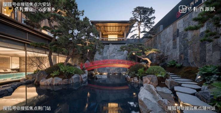 西源赋以南宋刘松年《四景山水图》为灵感,打造“一轴八境”立体园林,通过假山、叠水、屏风等元素,再现宋画中的层叠山水意境。