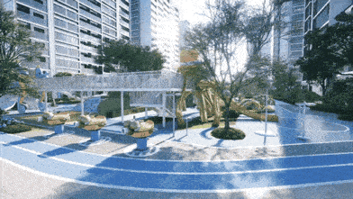 风雨连廊穿梭在小区里,赏景玩乐不用担心天气。还有那么多的「口袋公园」——男女主人的会客厅、花园,老人们喜爱的「百草园」,当然更少不了孩子们的游乐场。