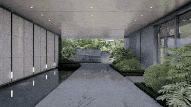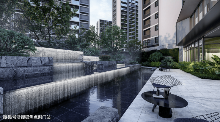 茂盛的「热带雨林」后,还有一道「山水」——穿过湖境观岚这道主入口,景观叠水奔涌而来。