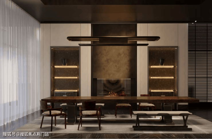 餐厅亦是如此,可以打造岛台,亦可以轻松摆下6-8人桌,侧边还可以打造一整面的餐边柜,假如吃饭的时候突然来了兴致,想小酌一杯,转个身就可以打开柜子,露出一面墙的美酒,精心挑选出一瓶,为客人满上。