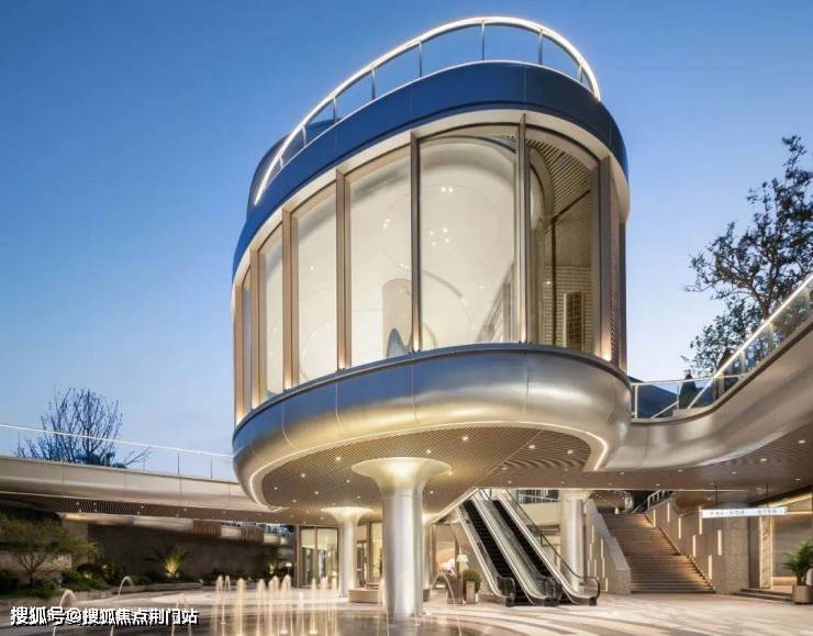 入口建筑的流线型门头,贯穿地上地下的酷炫天桥,设计灵感就来自9号线,呼应着地铁TOD的快速流动。