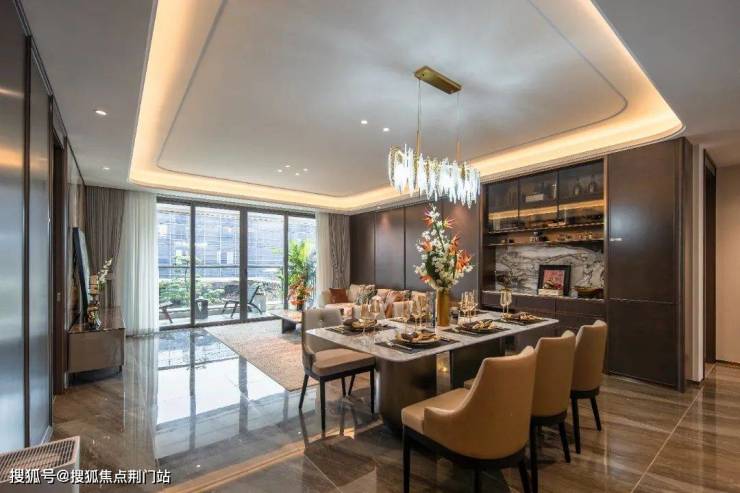 建面约310㎡的边套,首层南向横厅面宽就达到了约6.9米,厨房面宽约5.5米,可以阔绰地分出中西厨;