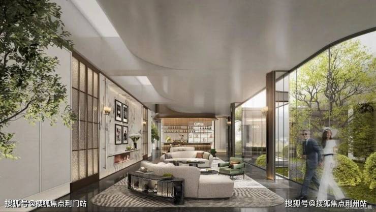 会所功能区环绕下沉式庭院布局,并通过无缝拼接玻璃,实现了室内和景观的无界连通。
