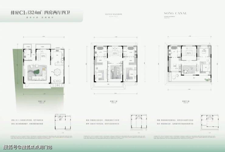 面积和形态的取舍一直是叠墅的一个难点。河印府叠墅实现了产品形态与面积的均好。相比市场那些动辄产权300+㎡甚至350+㎡的产品,其建筑面积约为136-176㎡,控制得当。虽然产权面积被有效控制,但墅居产品该有的空间感却没有减少,前庭后院、地下延展空间、屋顶空间.....一系列空间,与市场上300㎡+产品在尺度表现上并无太大差异。