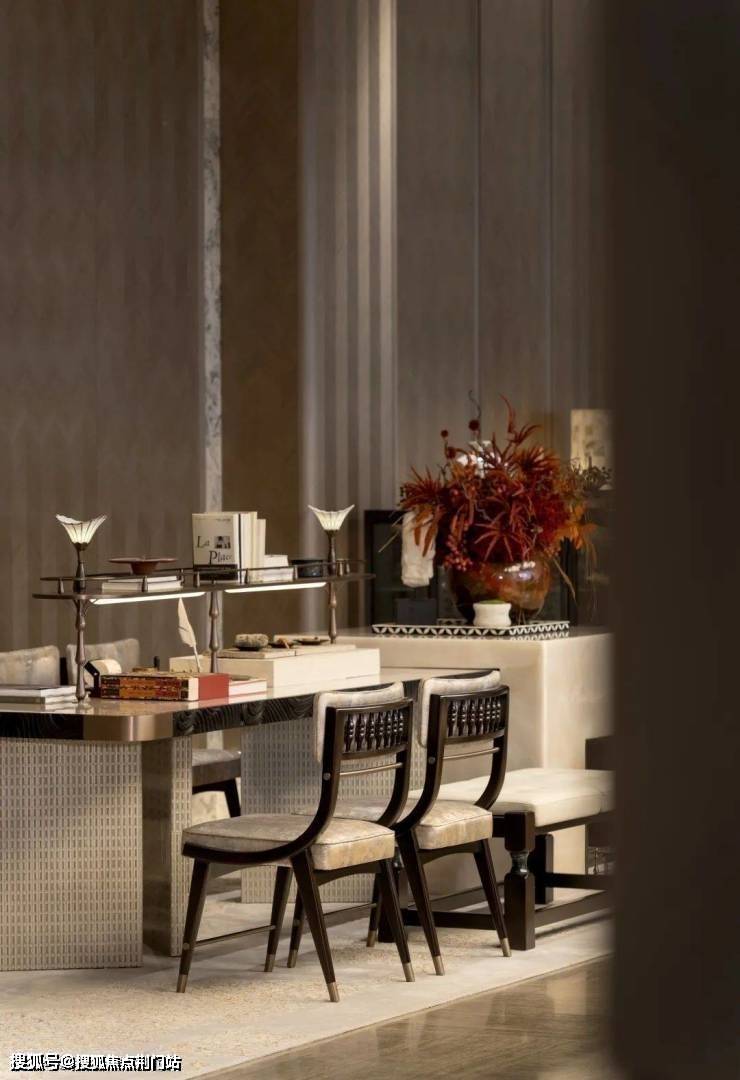 设计师巧妙提取良渚文化的线条语言,将那些镌刻在玉器上的古老符号与自然生长的图谱完美融合。水波纹琉璃壁灯将流动的液态美学凝固于金属支架之间,以光的韵律谱写现代隐奢。