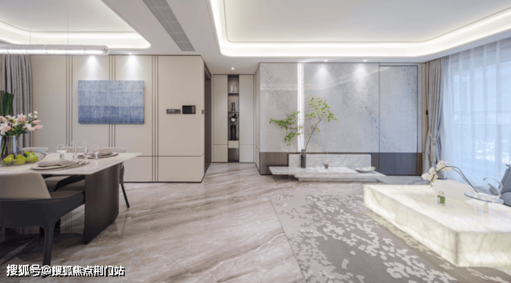 以印度蓝奢石和铝板为基座,勾勒四面铝板线条+金灰色铝板窗框+北面透光大玻璃+南面铝板,从远处看,像蓝钻,从近处看,像艺术品。既形成“层次感品质住宅”,又创造出城市里的“美学灯塔”。在楼市,室内空间又被称为“房子的灵魂”,直接决定了居住体验!