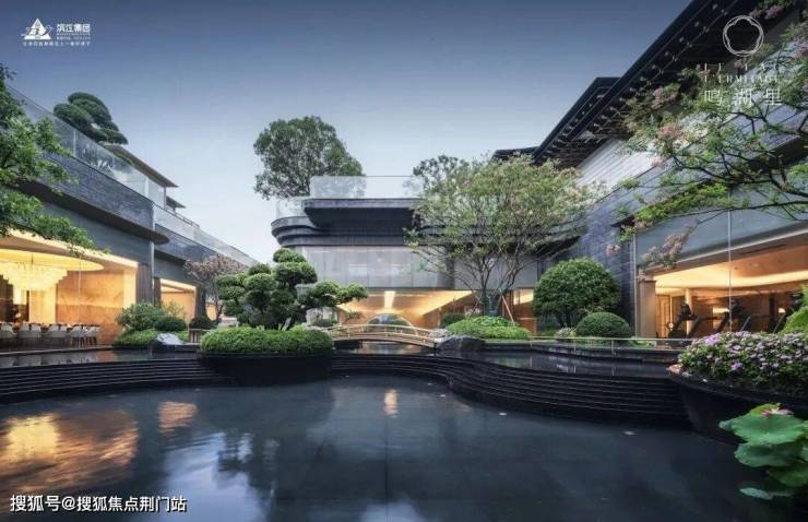 在进入园区前,鸣湖里有专属的仪式感,接四方天水纳财,在水景中注入跳跃的生命力,这些吉祥如意的祝福隐喻是中式归家独有的。