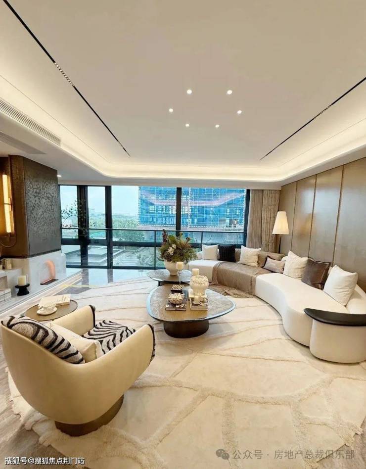 构筑约1200平方米的八大主题会客厅,与下沉式庭院无缝对接,打造无界限的融合体验。地上会客厅大堂前场汲取迪拜 THE LANA 酒店的设计灵感匠心独运,打造流畅圆弧形书页式吊顶“无界之镜”超大落地玻璃,构筑全景观景盒子内外景观浑然一体,曼妙风光徐徐映入眼帘。