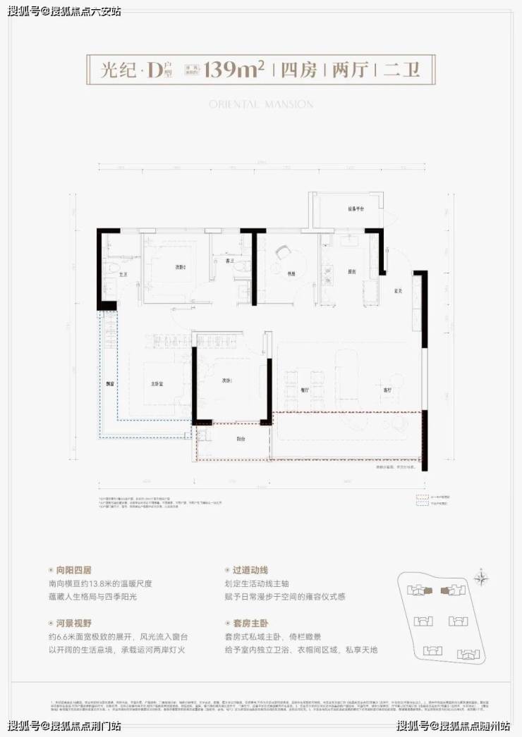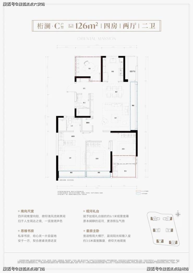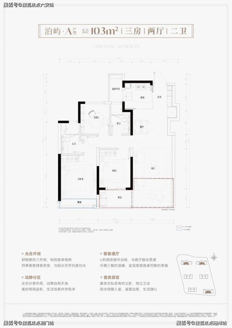 南向三开间朝南,约9.8米大面宽,约7米阔绰阳台,餐客厅贯通,并连接阳台,百变待客空间;套房式主卧,南联阔景飘窗,栖居更温馨舒适。