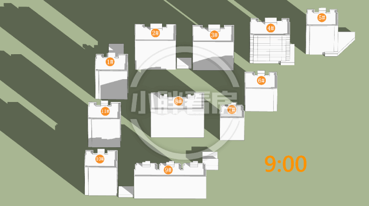 夏至(9-15时)在售楼栋日照时间和动图