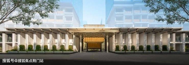 先看项目大门,我们会震撼于超200米宽的酒店式门仪、最高约7米的尺度,惊艳于16根柱廊序列的典雅气质,心仪于紫金琉璃背景墙、玉石纹理的透光材质的浪漫神韵。