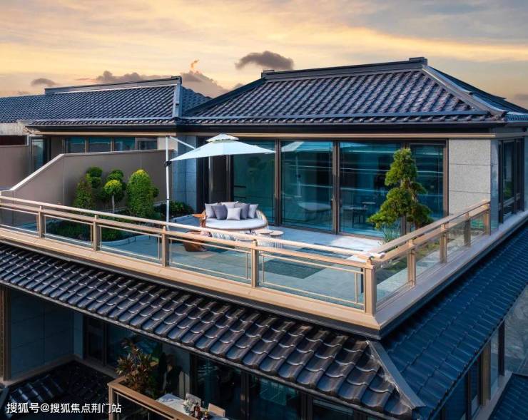 久映颂月府的投入远不止这些奢石、古树,从排屋建筑外立面也能看出一些隐形成本,伊朗进口的蓝眼睛石材,大面积落地玻璃,香槟色铝板,就连北向立面也是如此。排屋能成为改善天花板,是因为其有天有地,有私密性,久映颂月府则把这些属性拉满。在常规的排屋打造基础上,久映颂月府进一步精进产品户型设计,提升排屋产品的附加值。