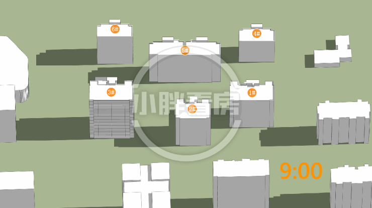 冬季:3#中低层受遮挡。就具体遮挡时间而言,3#主要在上午和下午受南部商业遮挡。