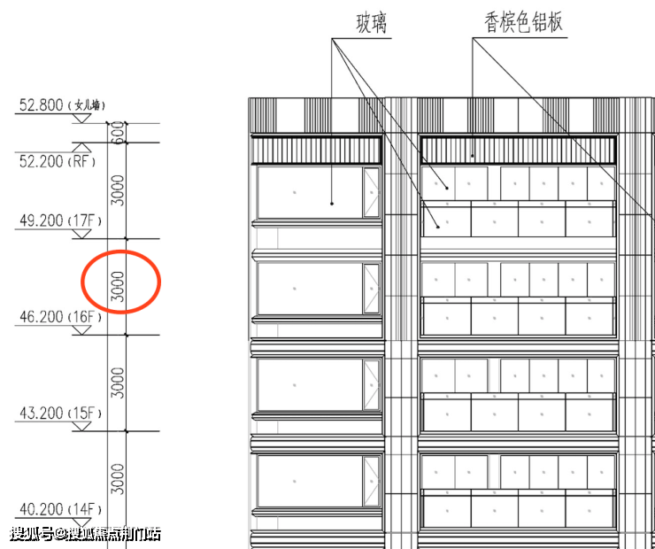 1、米色石材搭配香槟色铝板,和华润钱二6万+豪宅翡云润府有点像;