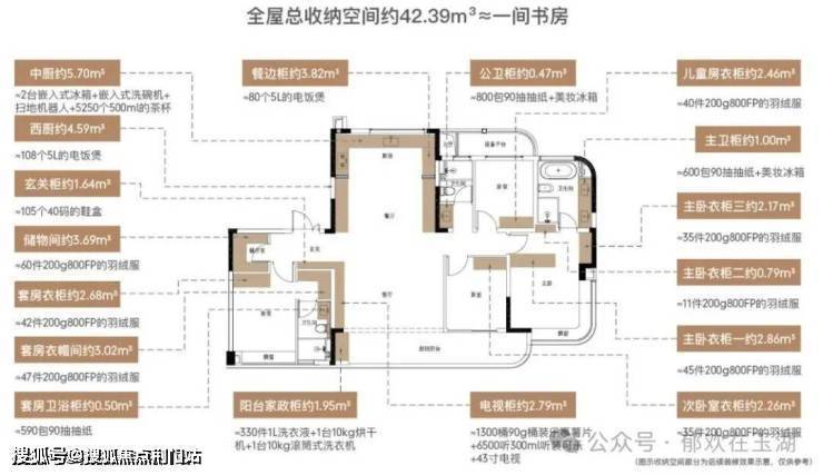✅「超强收纳」全屋总收纳约43m³,一梯一户,预设收纳内外双玄关