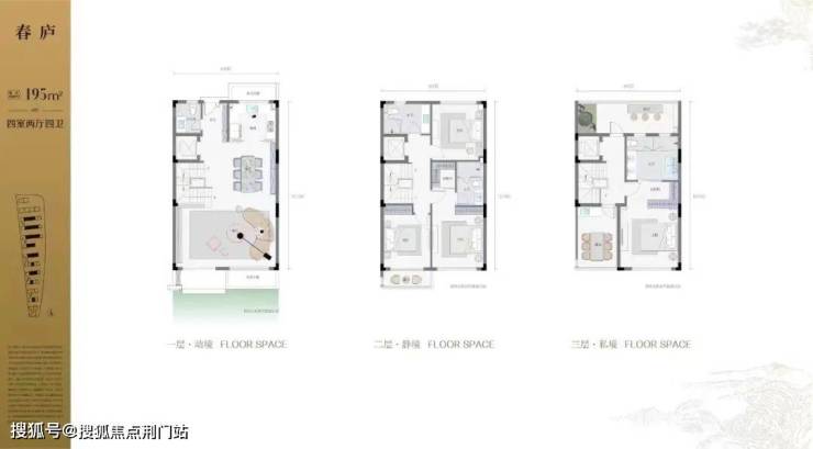 建面约195方的城市排屋,整体4室2厅4卫,地下2层地上3层,南北双花园设计。此外还有独家私密花园和南向超大会客厅。2层是双套房设计,并且南向带有独享露台。3层行政套房设计,并带有南北双露台。