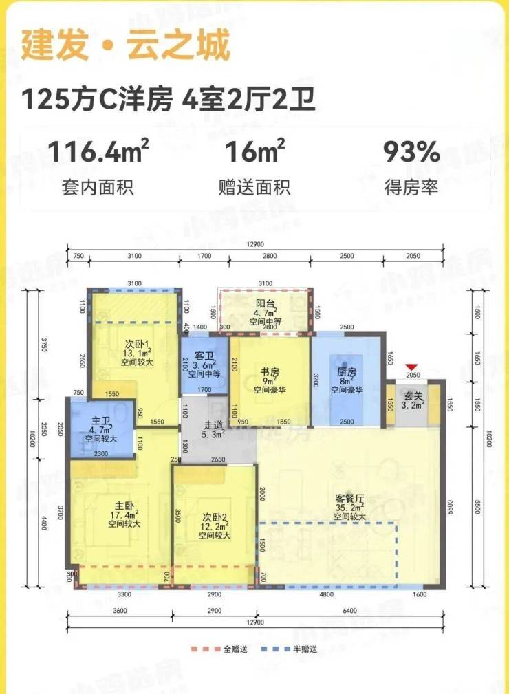 建面约125㎡ |四房两厅两卫