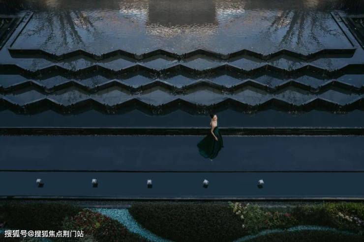 再看约1200方下沉庭院,叠水成瀑,区别于市面上大部分楼盘的“坑洞感”,形成上下两个平行空间的双层滨水度假系统,一看就很赞。