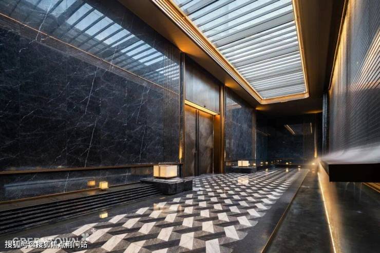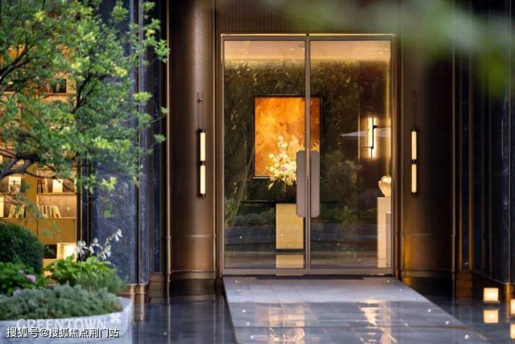 主入口知·云栖,取意西湖十景以"洄游"为理念,超52米跨度的回字形布局,重构传统"四水归堂"空间序列,约2.4米“流光礼宾” 塔冠,如悬浮的美学灯塔,与金色挑檐相映成辉,全封闭式阳台勾勒建筑轮廓,让立面如镜幕般收纳约30公里江岸鎏光!