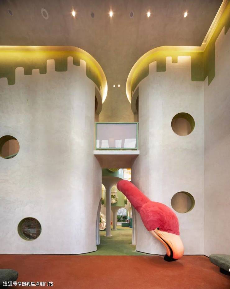 当然,在架空层最为出彩的,也不仅仅是“高度”上的简单突破,整体的功能规划也充满着大量的惊喜。在5号楼下的架空层,项目腾出空间做了一整层的超大童玩空间!整体面积超过480平米,根据孩子不同年龄阶段来设计功能不同的空间场景。