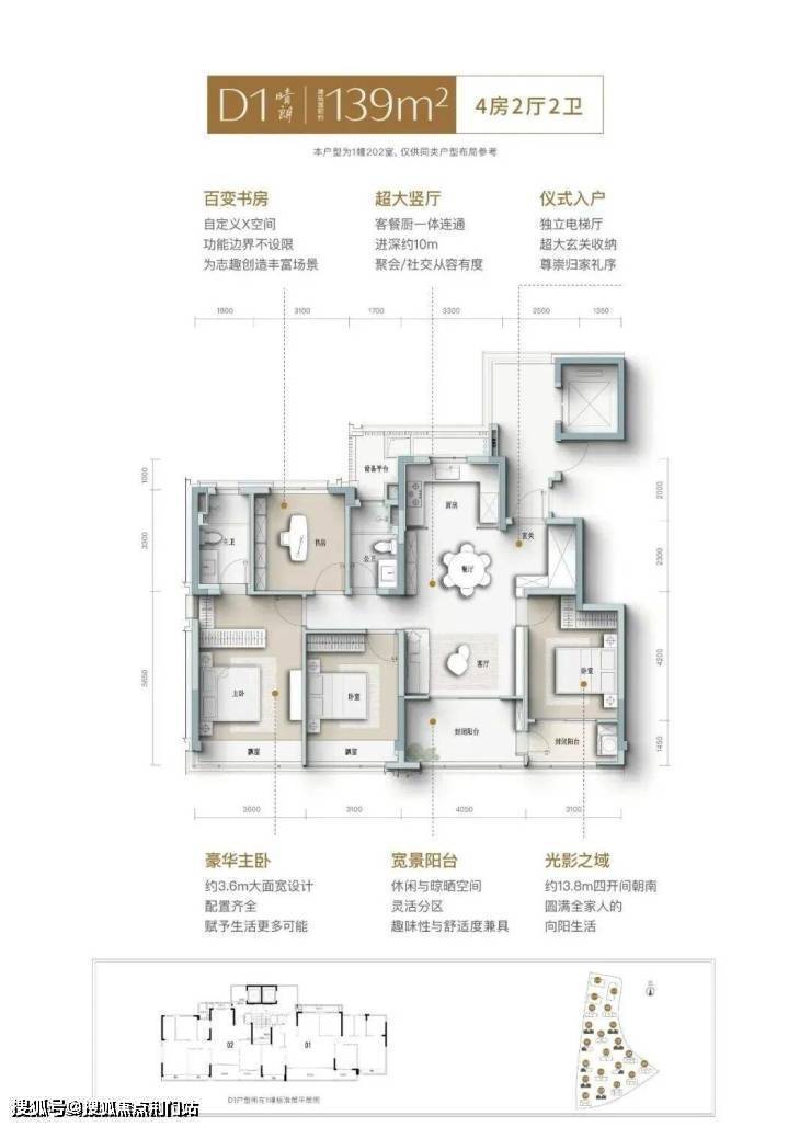 建面约139㎡南向四开间,引阳光肆意倾洒,LDK一体化宽厅,打破空间隔阂,成为家人互动、朋友欢聚的核心场域,餐厨开放式设计,让烹饪不再孤单,自定义X空间,实现“不为人生设限”,次卧家政阳台,兼顾实用与观景,约3.6米奢阔主卧,妥帖安放身心,精细化收纳,生活井然有序......