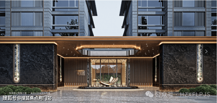 望金马府再现星级酒店车库入口,使用仿铜铝方通、动感科技灯带、高级仿石纹铝板打造高级感入口,搭配项目发光Logo,仪式感拉满。