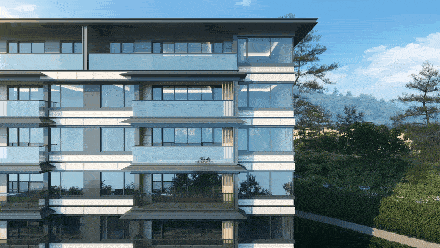 排屋建筑的二层部分是采用大面积落地窗形式和挑台露台形式,洋房则运用了大量横向贯通的建筑元素和设计手法,如横向玻璃带,更好的体现了多层建筑的舒展性和延伸性,进一步削弱了建筑高度对人带来的压迫感。两个产品都注重当代人审美观,又关注到日常生活对阳光日照的需求。