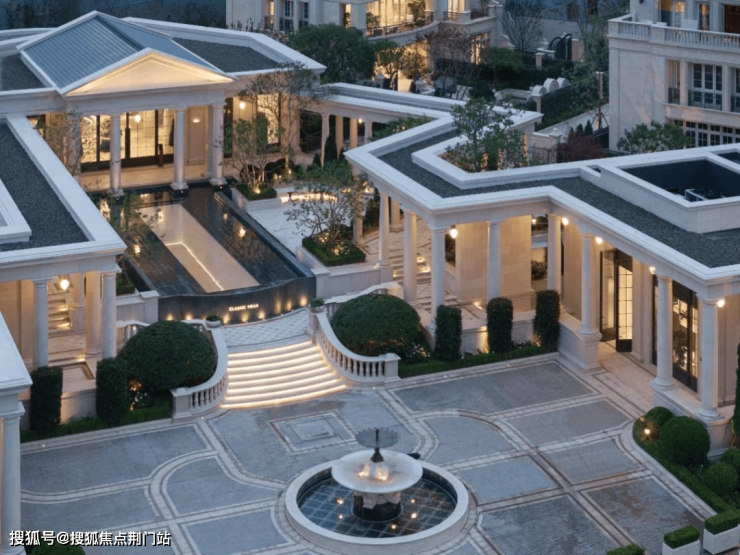 比如,你能看到入口那片很美的镜面水池,被法式廊柱包围出强大气场;你也能看到地下约8.2米层高的室内恒温泳池,它的上方正闪烁着从镜面水池透射下来的日光;