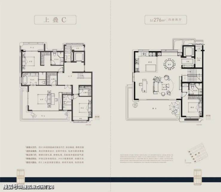户型方面,主力建面约210-280㎡四层叠墅,采用全套房设计,朝南大开间阳光满堂,主卧“小家化”,步入式衣帽间和独立卫浴间兼备,更大尺度的面积,更开阔的家庭社交区,更舒适的套房空间。