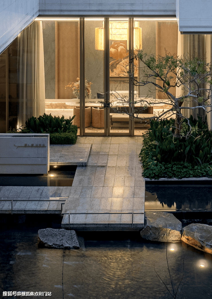 整体向内围合的布局,是对外界喧嚣的温柔疏离,亦是对内部价值的极致凝练。下沉庭院与错层露台构成的多维空间叙事,以「镜面水景」收束自然灵韵,演绎「隐于市」的禅意哲学。
