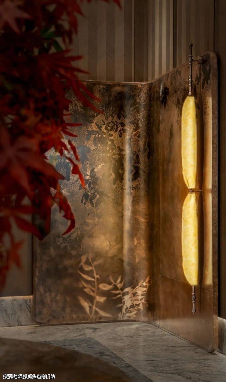设计师巧妙提取良渚文化的线条语言,将那些镌刻在玉器上的古老符号与自然生长的图谱完美融合。水波纹琉璃壁灯将流动的液态美学凝固于金属支架之间,以光的韵律谱写现代隐奢。