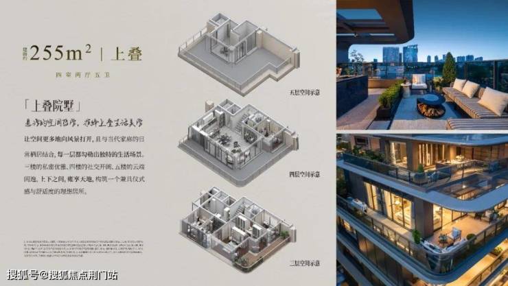 建面约199㎡-255㎡的“上下叠、三重院”,每一户均有独立入户系统,园中有园,每一层花园都代表着一种生活方式。