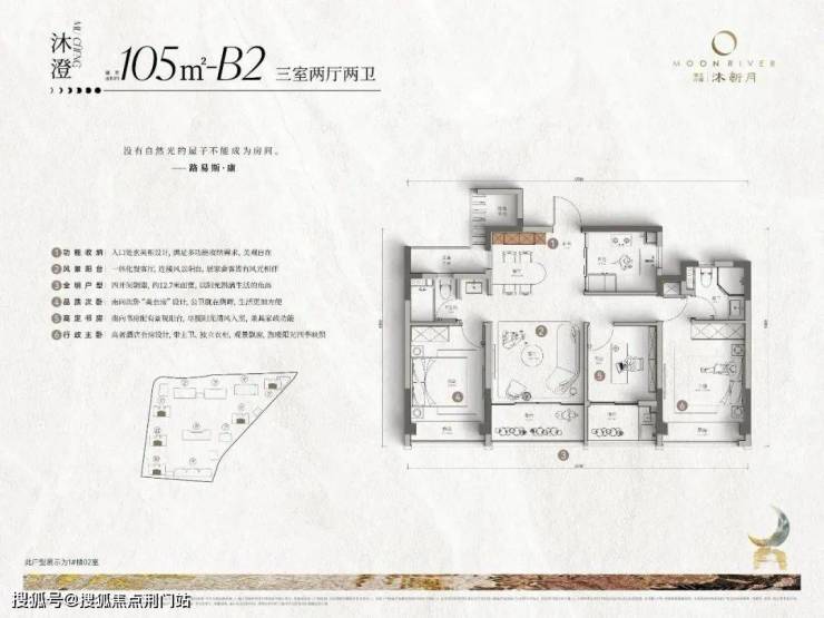 沐新月首开1号楼、2号楼,户型建面分别为约96㎡、105㎡、120㎡,其96㎡三房户型,堪称小户型设计的教科书级范本!